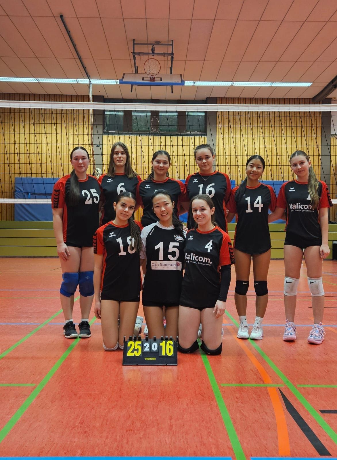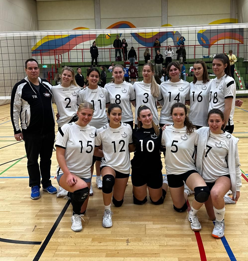 Ein gut gelauntes Team mit dem Betreuergespann Daria/Amelie - die die erkrankte Trainerin Vanessa vertraten - und den angeschlagenen Spielerinnen, die trotzdem zur Unterstützung in der Halle waren. 2 glatte 3:0 Erfolge konnten die jüngsten Damen im SCK in der Kreisklasse des HVV einfahren. Im Spiel gegen den Nachwuchs des VC Wiesbaden mussten sie ihr ganzes Können aufbieten, um auch den dritten Satz letztlich mit 26:24 für sich zu entscheiden. Deutlich lockerer verlief die Partie gegen den VC Liederbach 2. Nachdem Liederbach im 1. Satz nur 12 Punkte erobern konnte und auch der 2. Satz an Königstein ging (mit 20 Punkten für den VC), brachen bei Liederbach im 3. Durchgang alle Dämme. Nur 3 Pünktchen standen am Ende auf der Zähltafel für die Gäste. Damit wurden die jungen Damen Herbstmeisterinnen und können weiter mit Recht vom Aufstieg 2026 träumen. Das JGK3-Turnier mit 8 Teams verlief für die beiden SCK-Mannschaften ebenfalls sehr erfreulich. Alle beide wurden Zweite in ihrer jeweiligen Gruppe. Aus Zeitgründen konnten keine Platzierungsspiele mehr gestartet werden, da die Liederbacher Damen 1 bereits in der Halle warteten, um ihr Heimspiel austragen zu können.