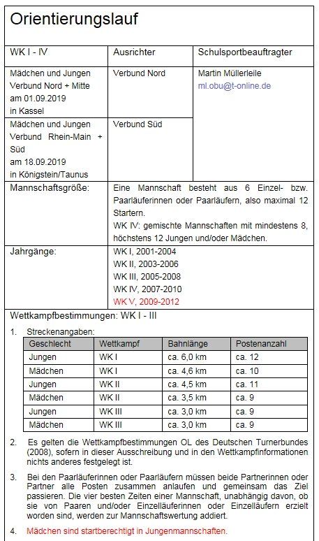 Wettkampfbestimmungen: WK IV+WK V