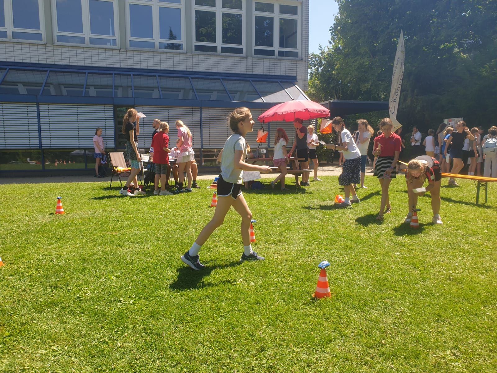 Auf dem Hoffest der St. Angela-Schule waren auch die Oler des Schulsport-Clubs aktiv. Sie hatten auf der Wiese vor dem Lehrerzimmer einen kleinen OL vorbereitet, der von den Schülerinnen auch fleißig genutzt wurde. Für die Schnellsten gab es eine leckere Melone - passend zu den heißen Temperaturen des Tages :-)) .