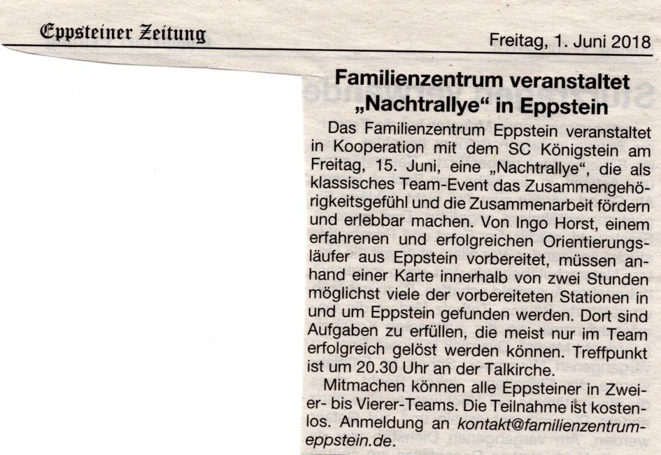 nächste Woche gibt's am Freitag schon zum 3. Mal die Eppsteiner Nachtrallye- Anmeldung ist noch bis Mittwoch möglich!