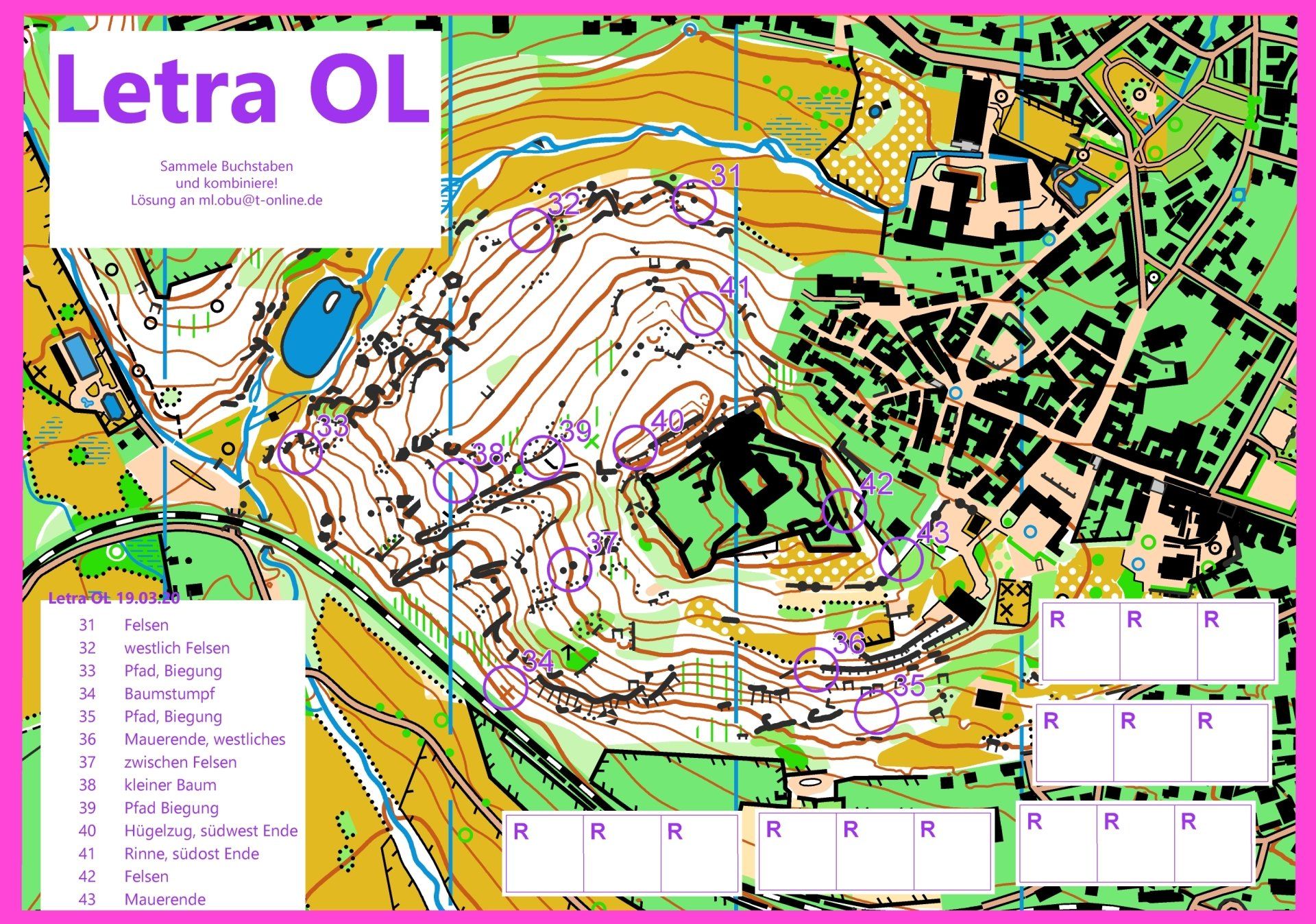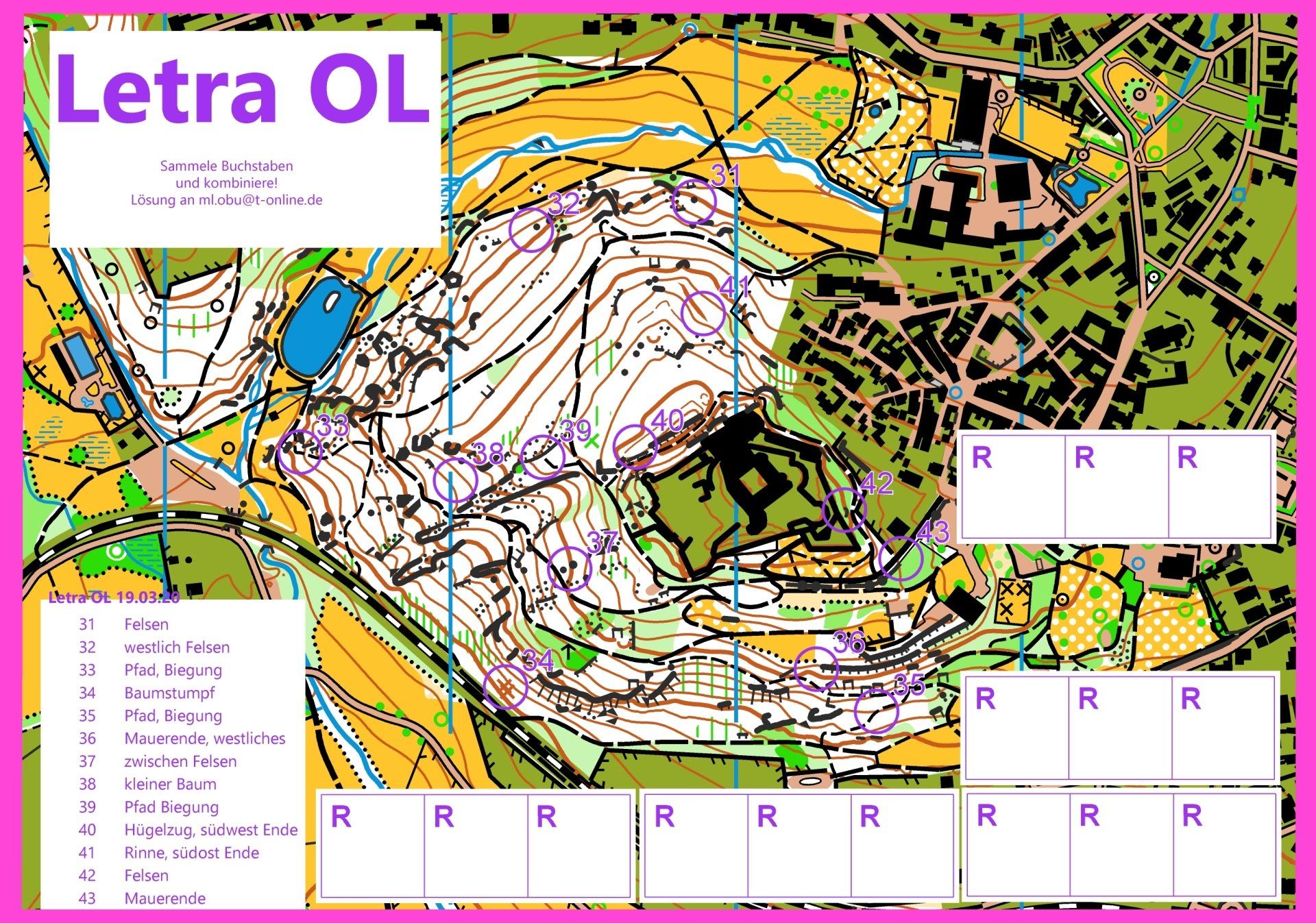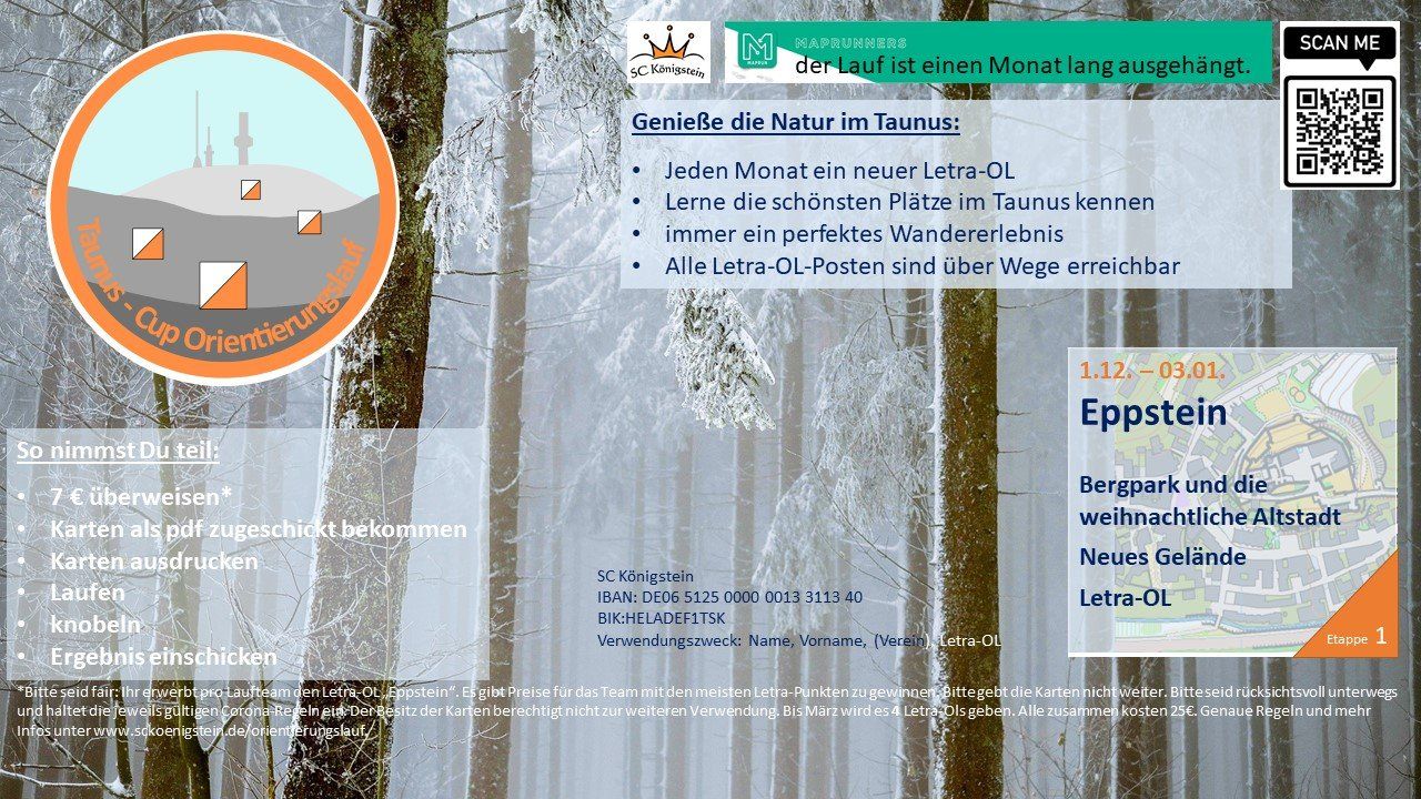 Bis in den März wird es jeden Monat einen Letra-OL geben. Wenn ihr als "Abo" an allen 4 Letras teilnehmen wollt, könnt ihr uns einfach einmalig 25€ überweisen.