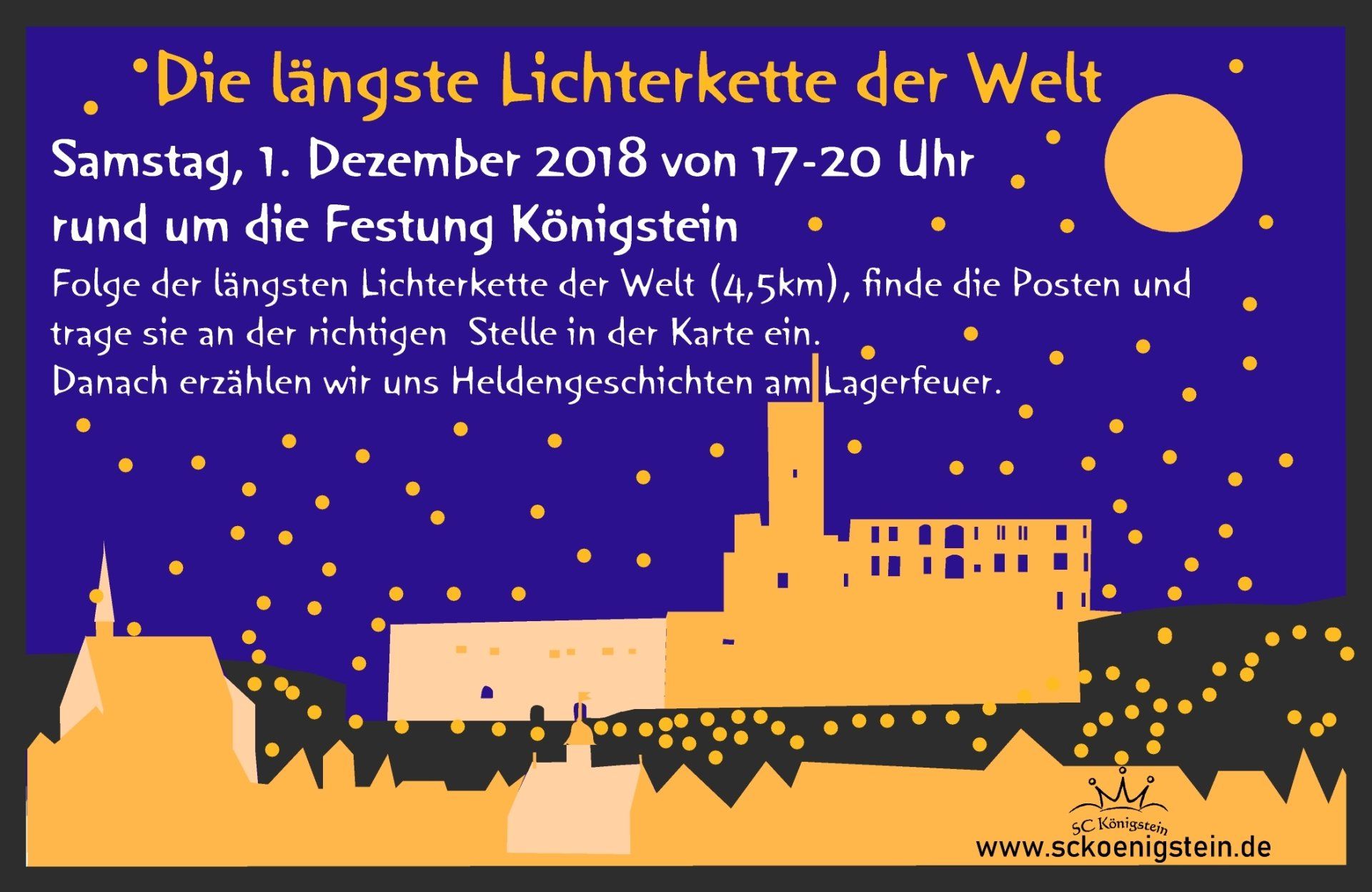 Die "Längste Lichterkette der Welt" startet wieder vom Grillplatz im Woogtal in Königstein. Parken am Freibad Königstein