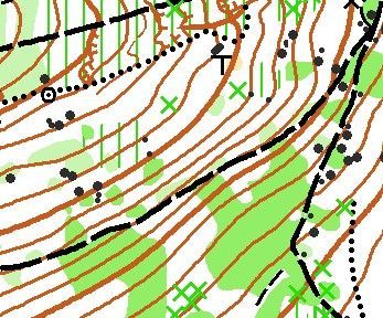 ein Gelände was es im Taunus gar nicht mehr so oft gibt: offener, flacher Nadelwald mit einigen diffizilen Dickichten. Die andere Hälfte der Karte besteht aus Buchen-Mischwald, teils taunus-steil. In Teilen der Karte fand letztes Jahr der Taunus-Cup statt.